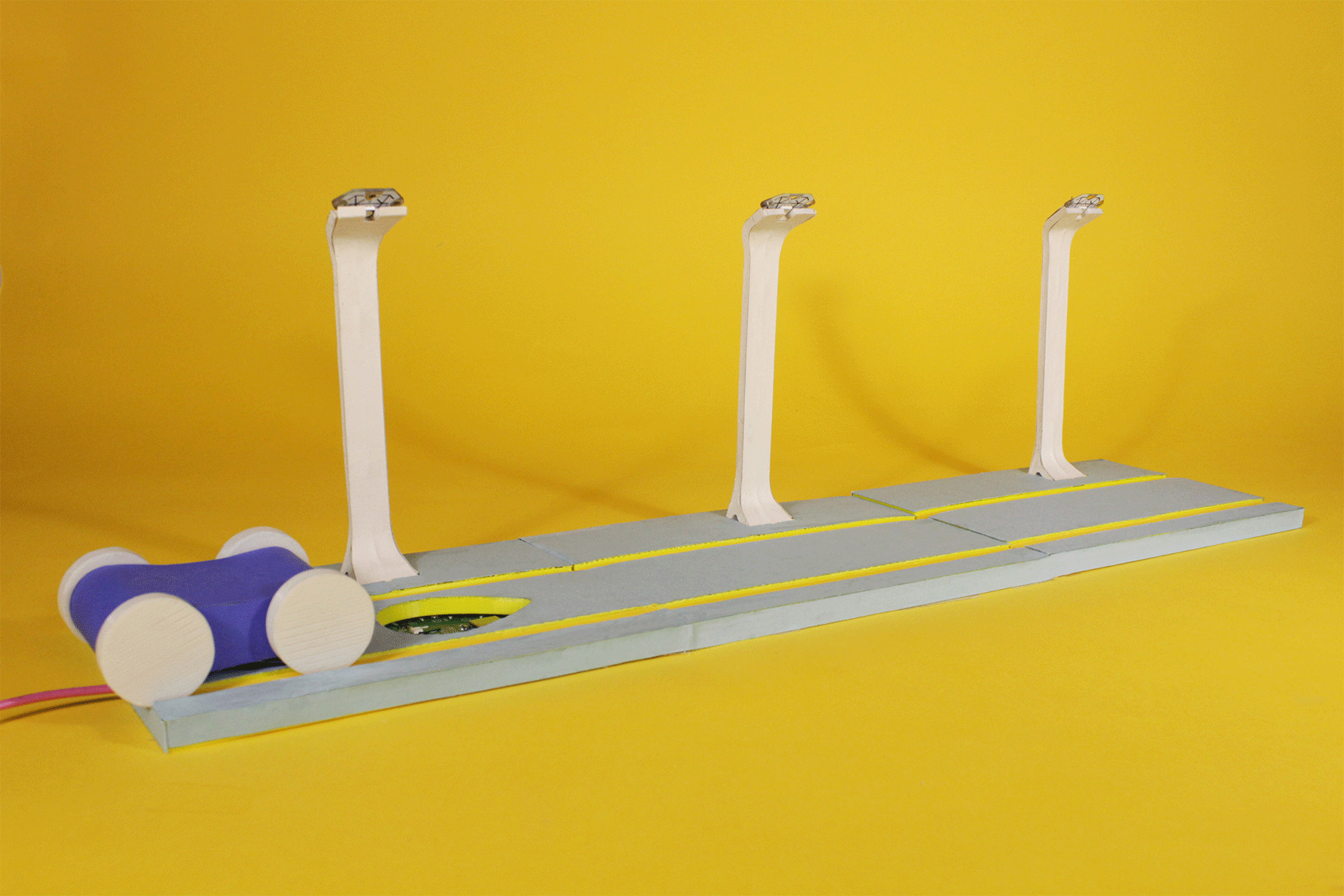 Every time a vehicle is sensed, the first light along the street turns on, then the second receives the signal sent by the first light and turns on. Each light is programmed to be triggered by the previous one, and to send signal to the next one. This way we can save energy and only have the lights on when they are needed!